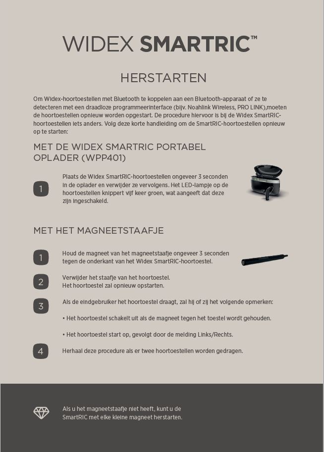 De Widex SmartRIC beschikt verder over Bluetooth en kan direct streamen met Apple- en Android-apparaten die dit ondersteunen. De hoortoestellen zijn met een bijbehorende app te bedienen en bieden nog vele andere functies. Verder wordt er een handige draagbare oplader bijgeleverd.