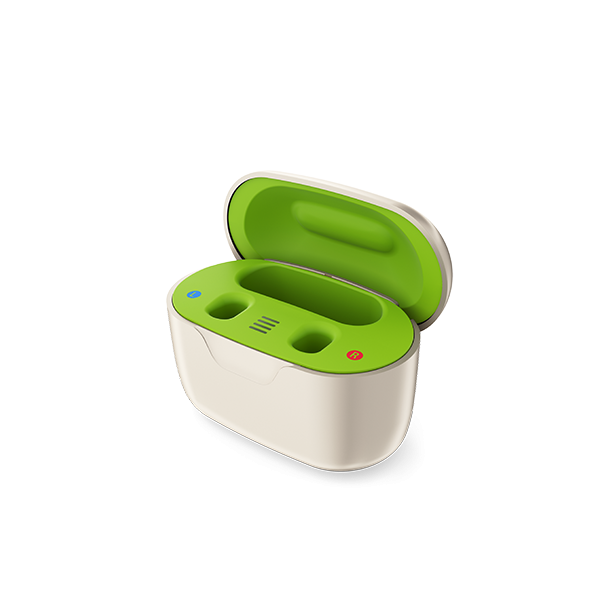 Oplader met ingebouwde accu geschikt voor de Phonak Audéo Life hoortoestellen.