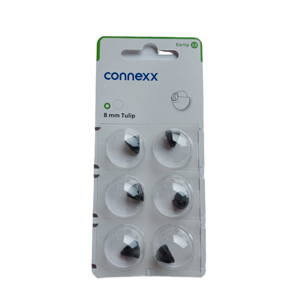 De Eartips 3.0 worden geleverd in een blister van 6 stuks. De tulip Eartips zijn beschikbaar in 2 maten: 8mm en 12mm. De Eartips in deze verpakking zijn maat 8mm.