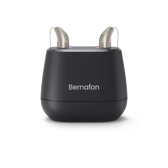 De Bernafon Desk Charger, ontworpen voor de Bernafon Encanta miniRITE R hoortoestellen, is niet alleen discreet in design maar laadt de hoortoestellen ook sneller op.
