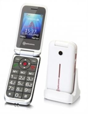 Uitklapbare mobiele telefoon (wit). - Tweeweg versterker tot 40 dB met minder dan 5 % vervorming. - Heldere klank. - Draadloze overdracht naar Bluetooth-apparaten zoals headsets, inductielussen of apparaten voor handsfree bellen, incl. overdracht van telefoonboek (afhankelijk van Bluetooth -protocol). - Audiovermelding van max. 10 namen uit het telefoonboek bij oproep. - Audiovermelding van gekozen cijfers (in D, GB, F, E, I, NL, TR, P, S, DK, N, FIN - optioneel). - Extra luid volume bij handsfree bellen. - Compatibel met hoortoestellen M4/T4.