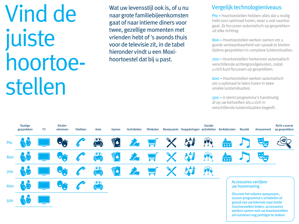Vergelijking van de verschillende tech-levels van het hoortoestel